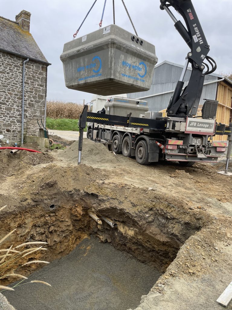 Installation d’un assainissement autonome avec filtre intégré pour une habitation 5 équivalents habitants.